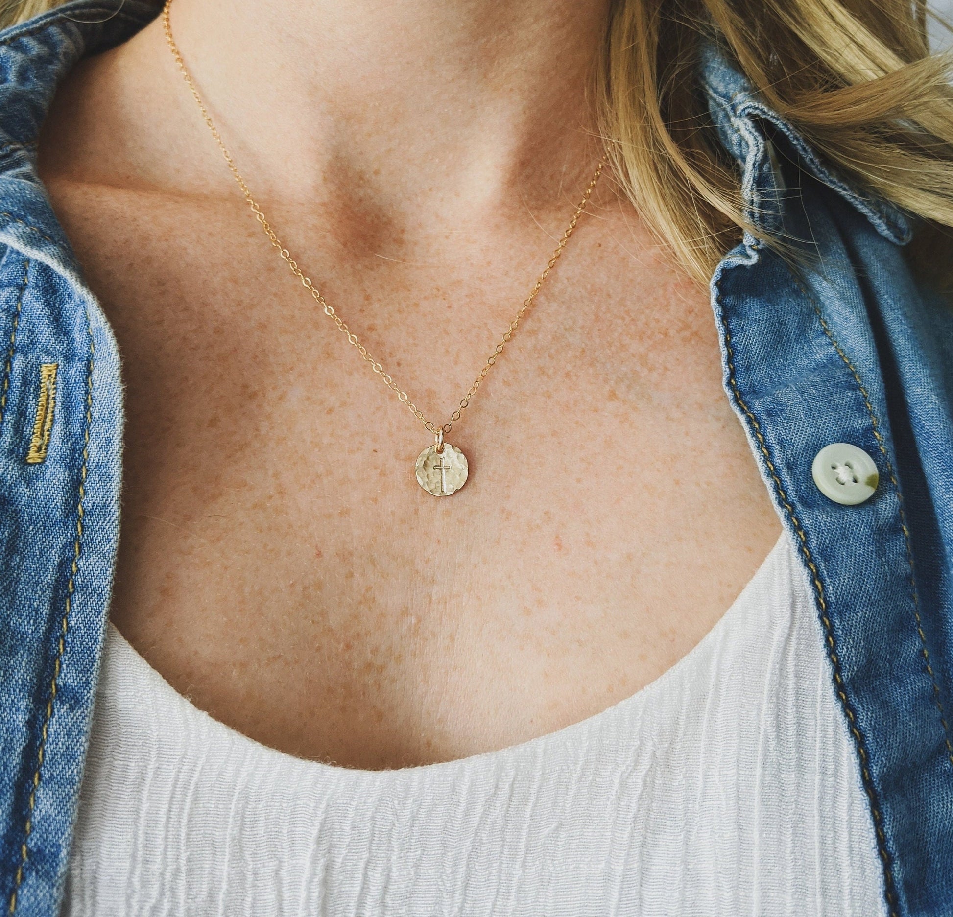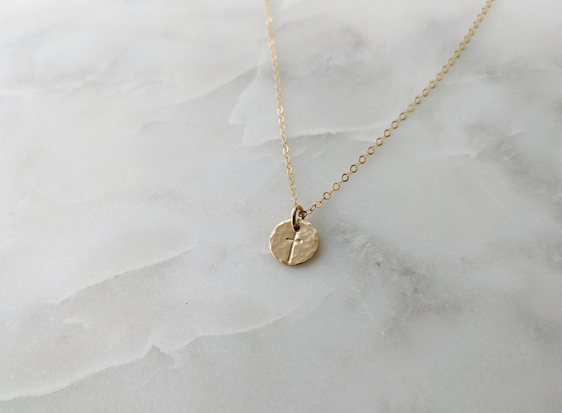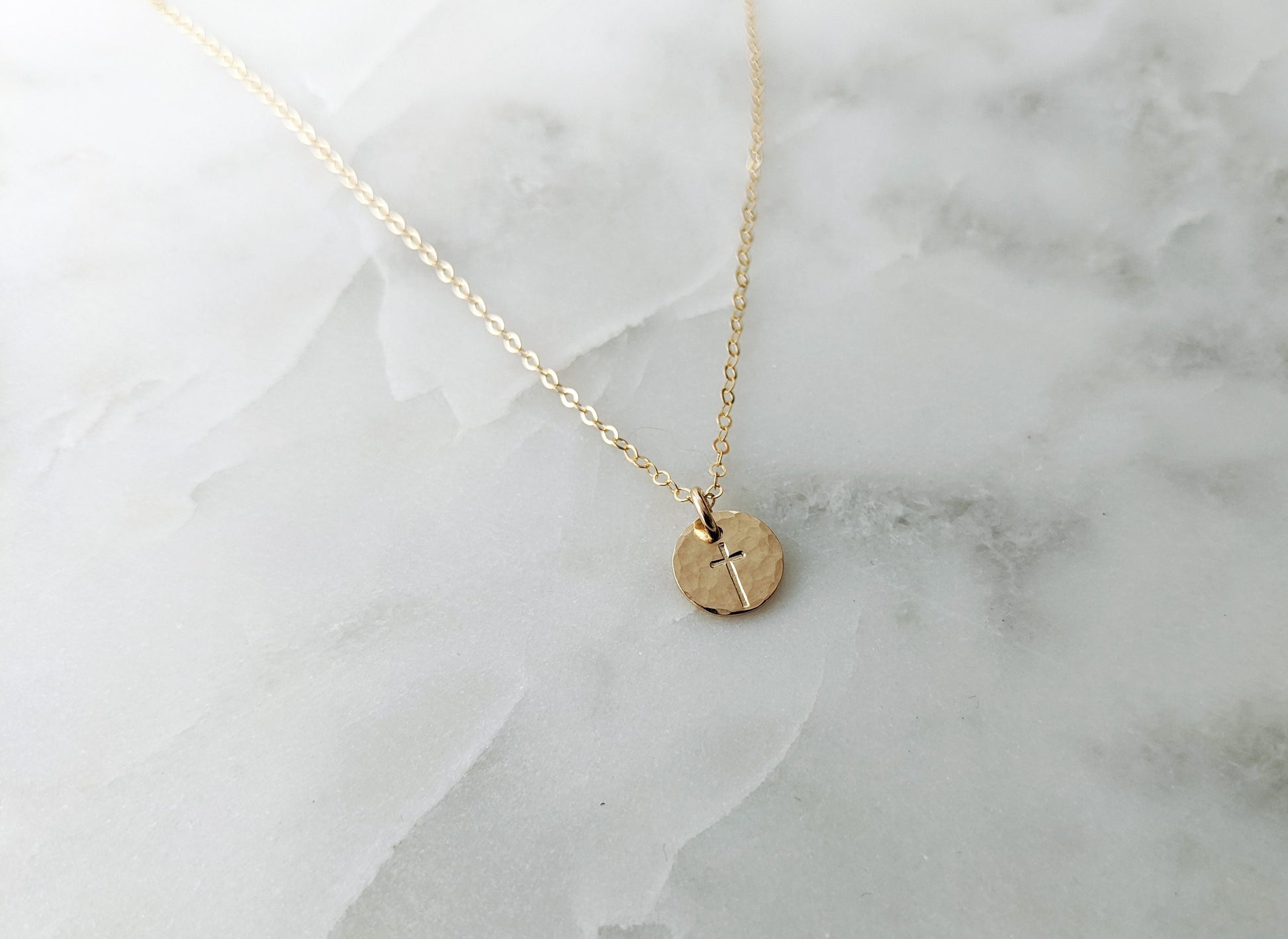 Gold Cross Necklace | Dainty Cross | Tiny Gold Disc | Minimal Jewelry | The Stamped Life