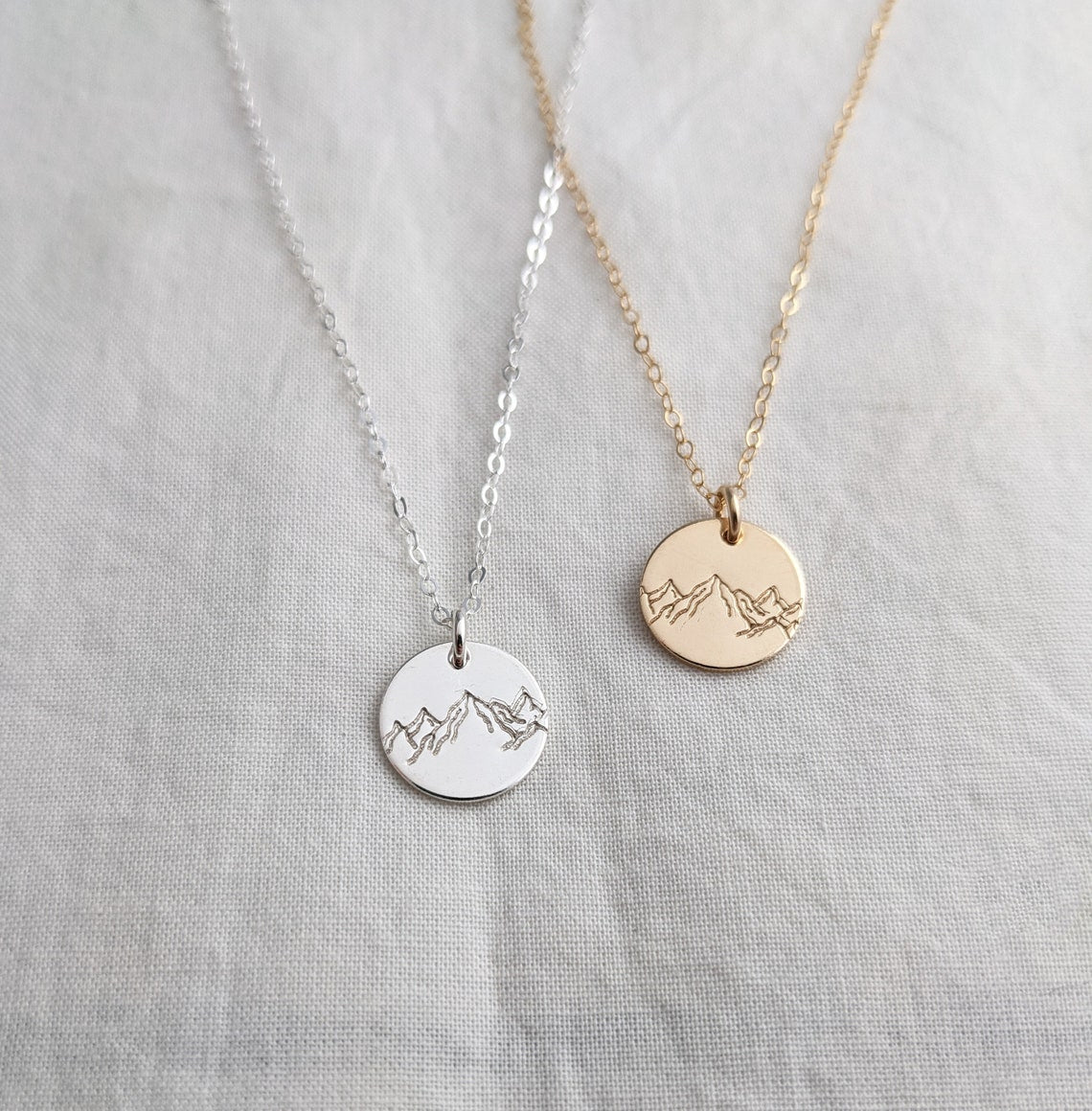 Mountain Disc Necklace, Mountain Charm Necklace, Dainty Necklace, Nature Lover Gift