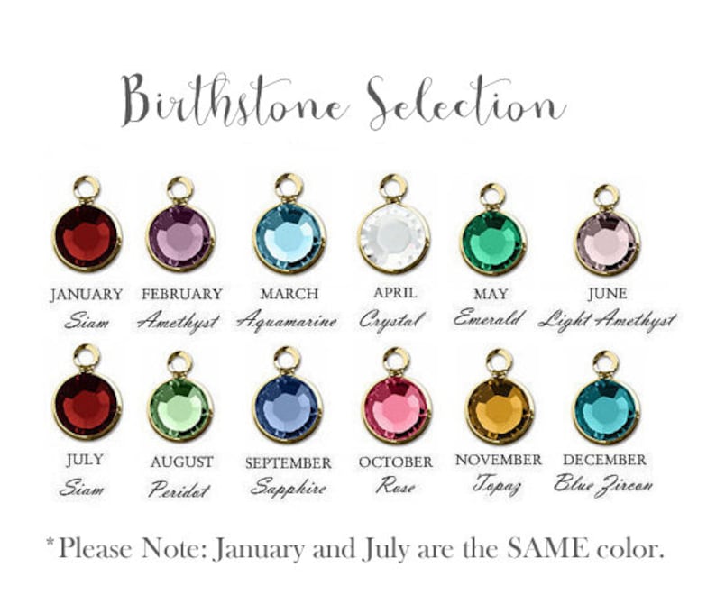 - One 1/4 by 1" bar charm with birthdate (00.00.00 format)