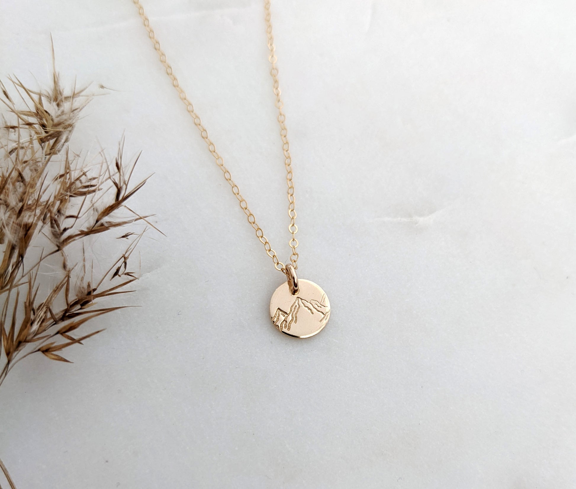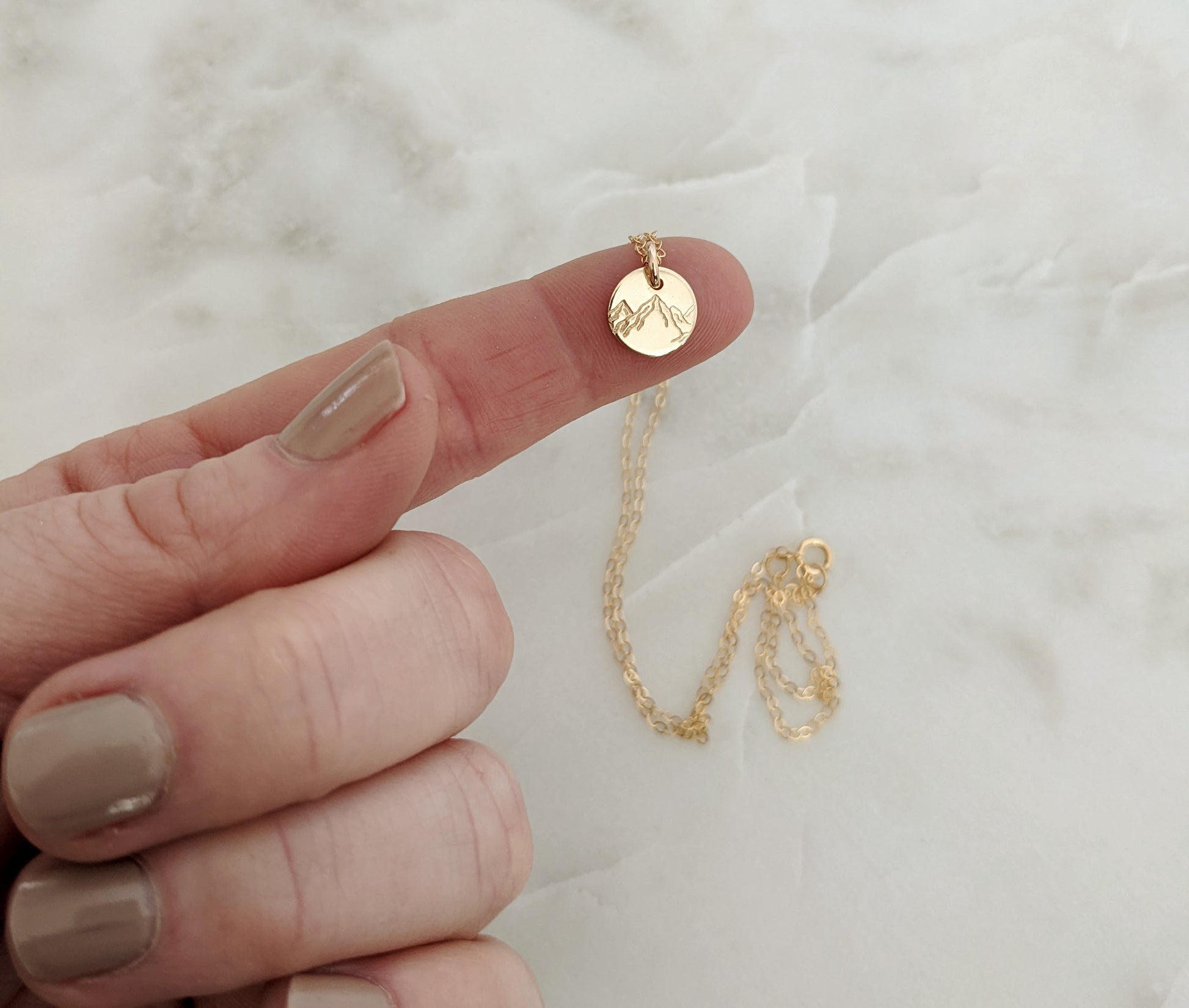 Tiny Mountain Necklace - Gold or Silver 3/8" Disc