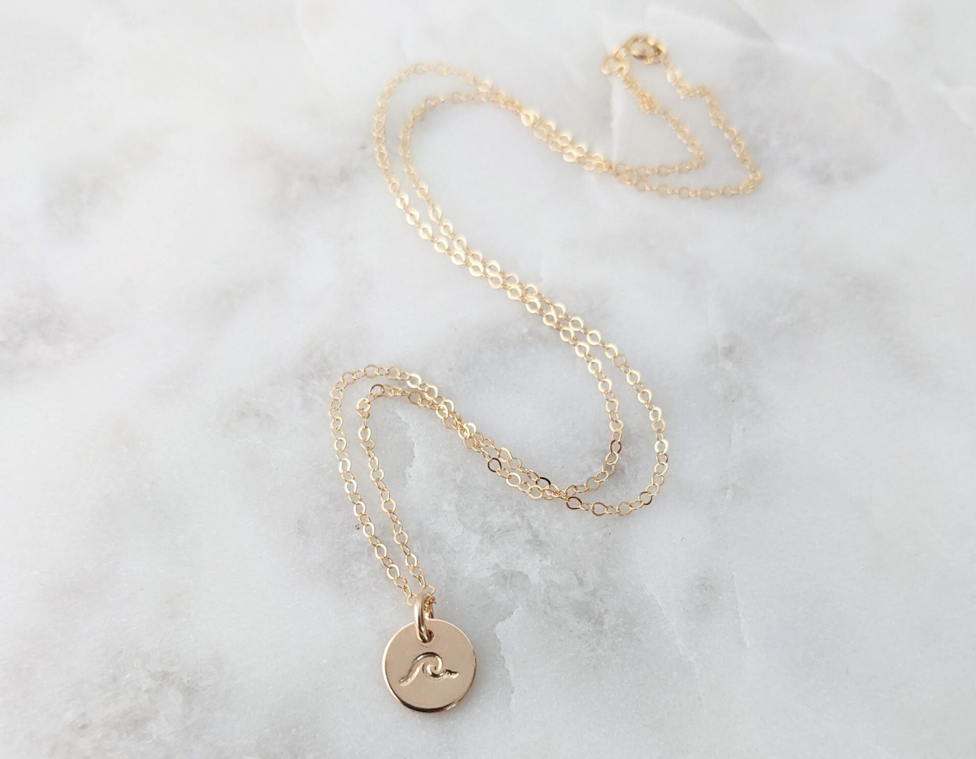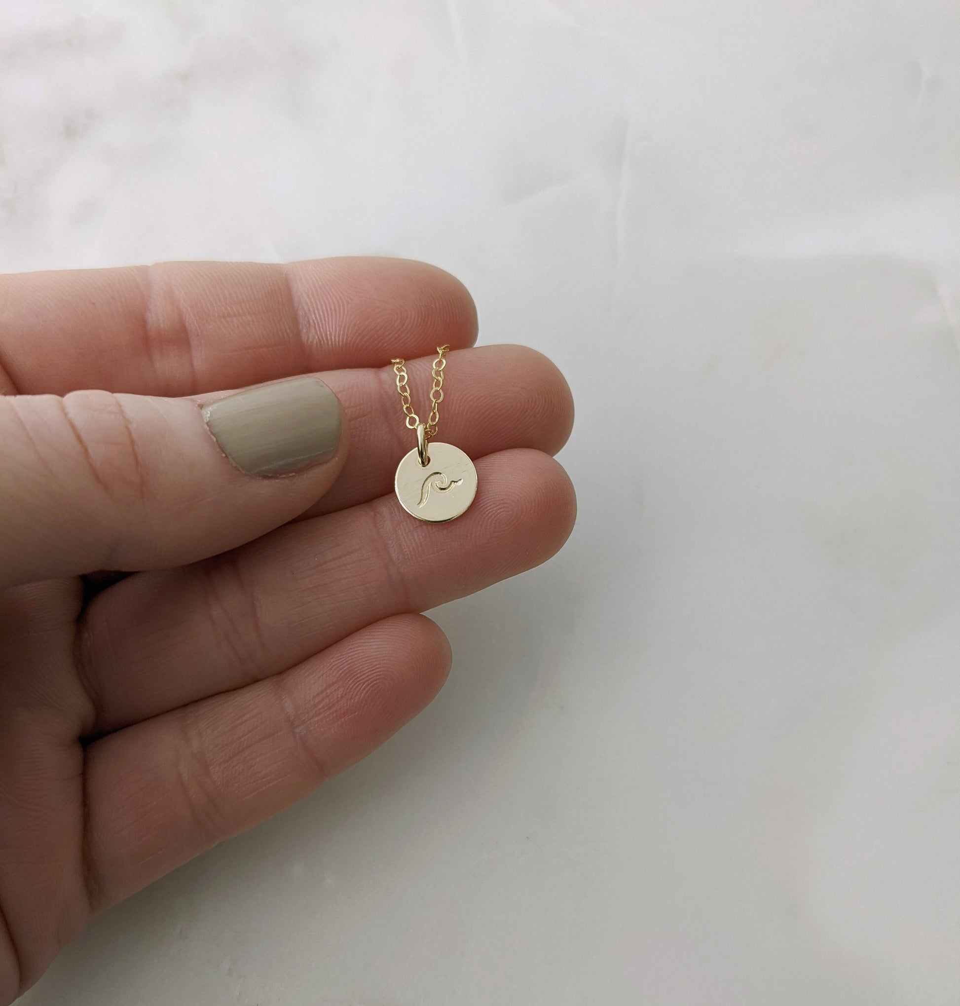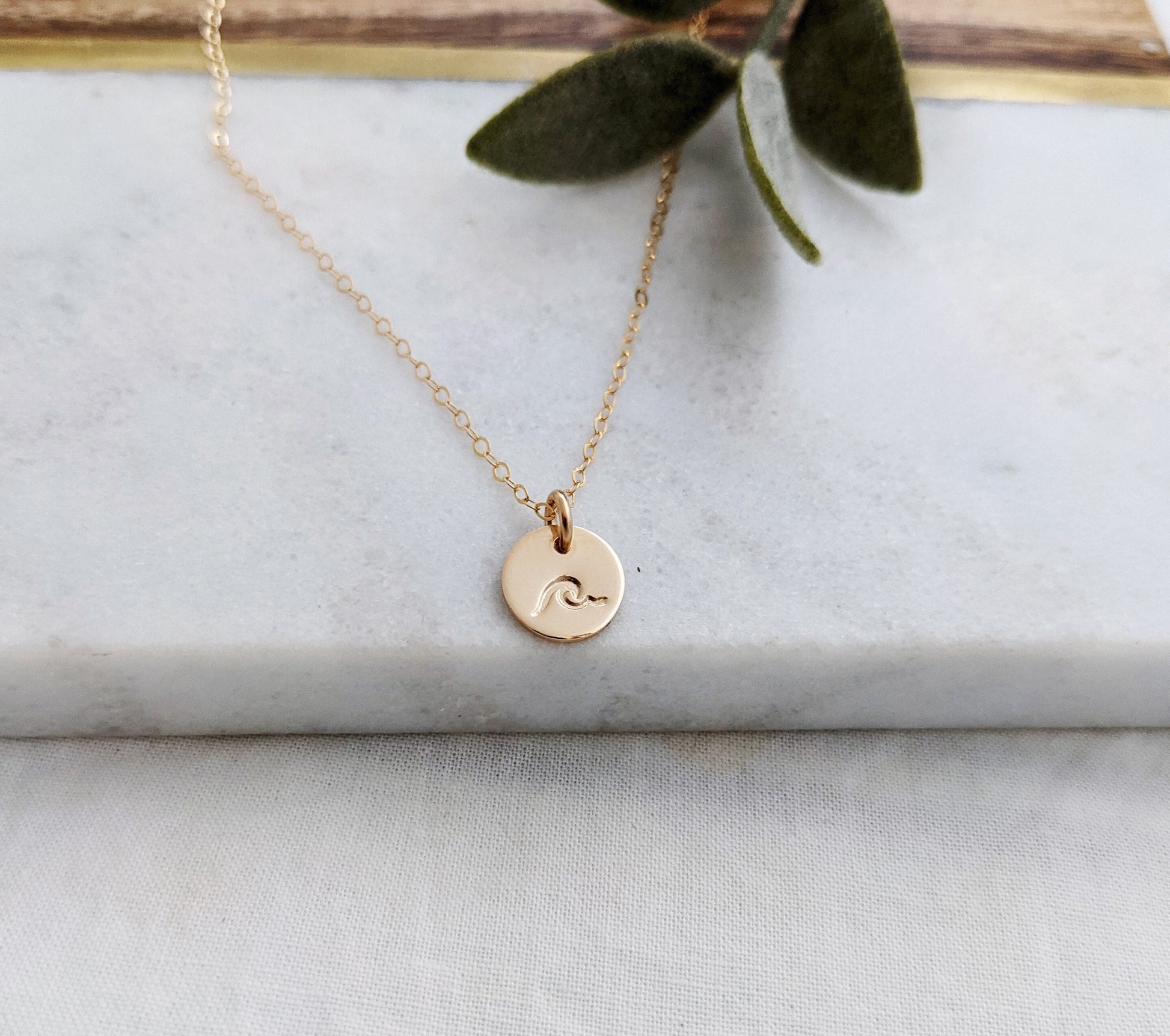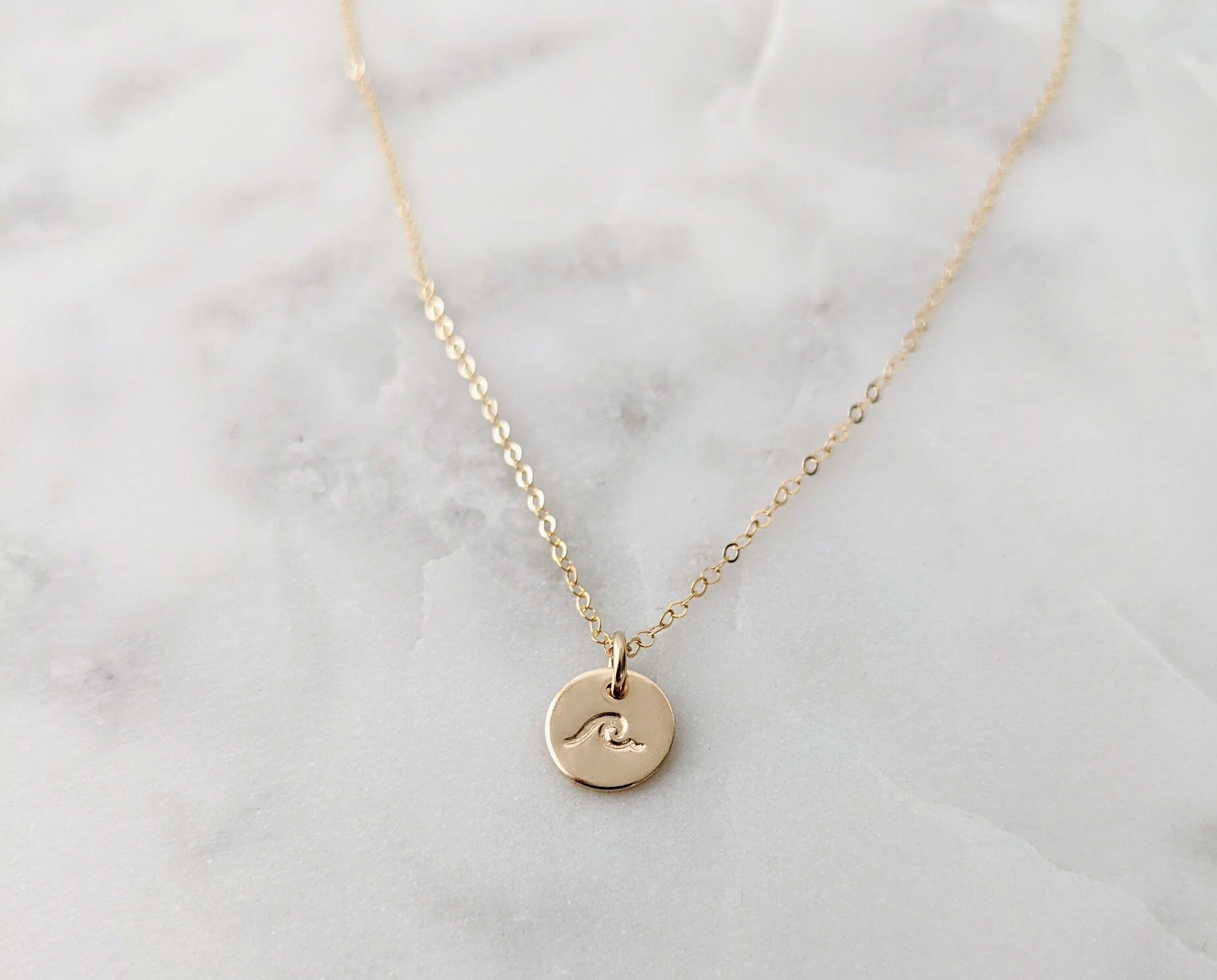 Tiny Wave Necklace | Ocean Lover Gift | Sterling Silver or 14k gold fill | Tiny Disc Necklace